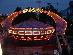 The Enterprise - Like a sideways ferris wheel, that locked people into little cages, then started spinning really fast. Then the wheel started lifting, so that it was going closer to up and down than flat out spinning.